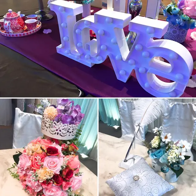 場內備有不少婚宴主題的裝飾跟背景,