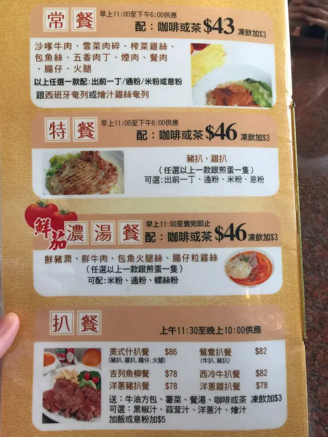 完全不是那回事的蕃茄濃湯 bonnicaLevel 42016-12-15395 views Follow Lunch和一班同事一行十多人到地茂茶記食,對飯沒什麼興趣的我見餐牌有鮮茄濃湯餐粉麵雖然只能選一款送跟一隻蛋,但圖片OK吸引所以最後選了豬潤米。鮮茄濃湯米粉$46來到後發現整碗米粉只有兩塊豬潤,46元食水真的深了點。再吃真點,原來不是蕃茄湯,是比平時在西餐廳的羅送湯更淡味道的湯底,完全稱不上濃,更沒有鮮茄味。熱奶茶失望的我唯有把希望寄托於這杯奶茶上,幸好這杯奶茶夠濃夠滑,而且不用加錢,不然我會忍不住給予一個差評 希望餐廳會有進步,因為客人不會因一杯免費奶茶而幫親The above review is the personal opinion of a user which does not represent OpenRice's point of view.LikeShare完全不是那回事的蕃茄濃湯 地茂館粥麵燒臘茶餐廳 https://s.openrice.com/QrKT0JYCf00Report Post Ratings2Taste2Decor3Service3Hygiene2ValueRecommended Dishes熱奶茶Waiting Time10 Minutes (Dine In)Type of MealLunch