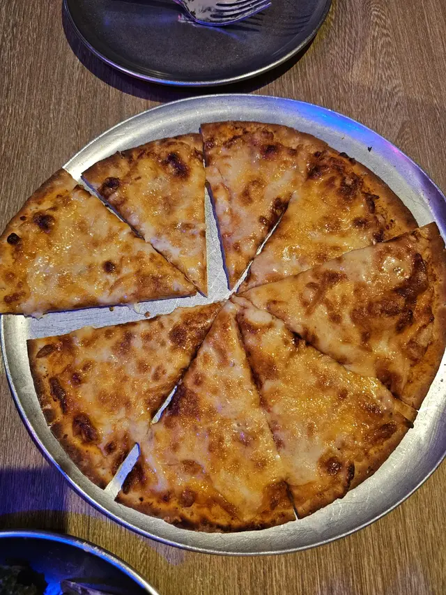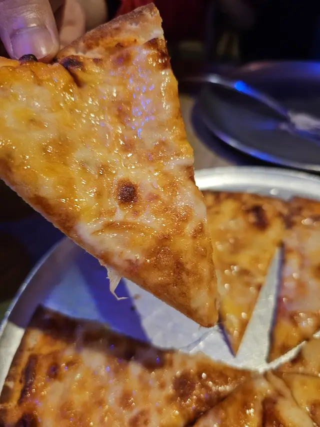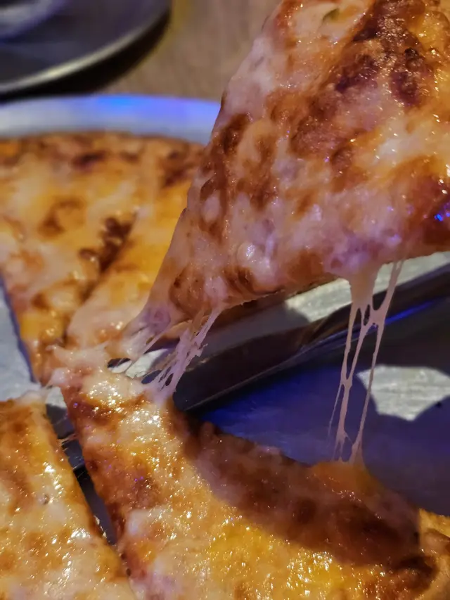 另外叫多一個四重奏芝士pizza, 又係即叫即焗, 上枱熱辣辣香噴噴, 薄批底覺得脆卜卜, 上面的四重芝士厚厚的, 極濃香, 四種芝士互補不足, 焗得金黃蕉香, 這個pizza真係好食到暈!