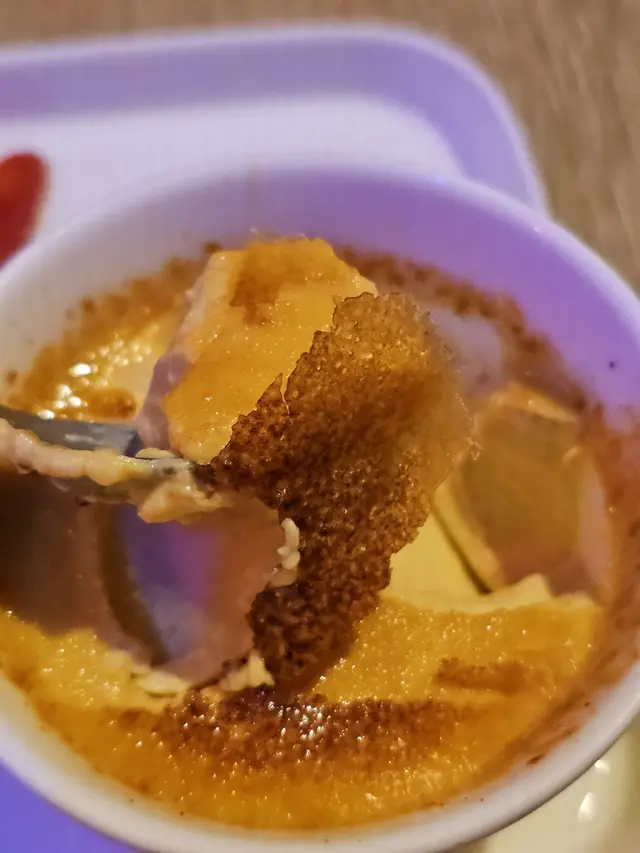 法式焦糖燉蛋口感層次分明, 薄薄一片的脆焦糖, 外脆脆的, 下層卻是綿密香滑的燉蛋, 甜度適中, 不甜膩。