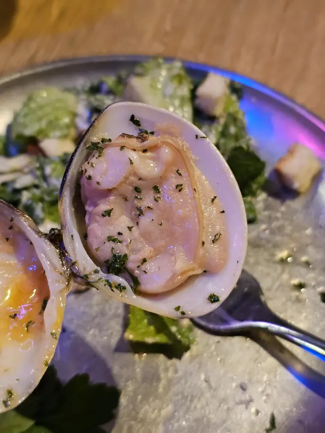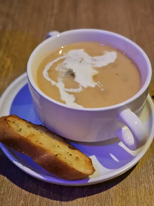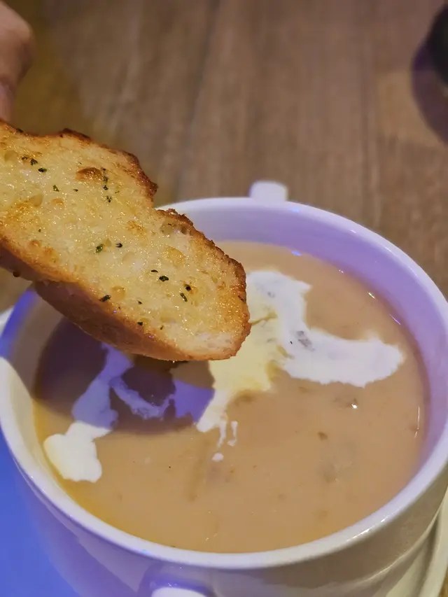 週打蜆湯入口Creamy , 有菇香, 蜆肉喊鮮及火腿的香味, 蒜蓉包暖暖的, 十分脆口。