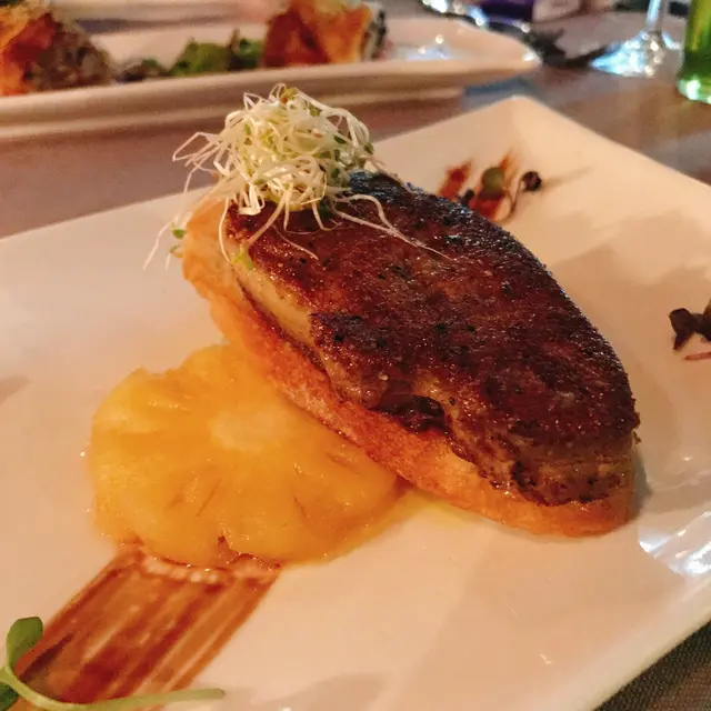 香煎鵝肝配馬沙娜酒燴鳳梨:見到「鵝肝」二字難免會想到肥膩感,不過廚師就巧妙地以鳳梨作配搭,入口時鵝肝的油脂一溢而出,非常之香