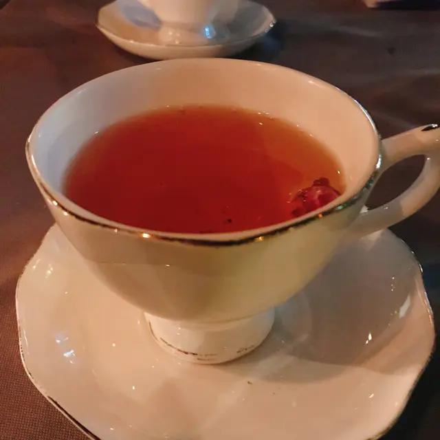 主菜過後,店員奉上花茶清清口腔、減低膩感,再吃甜品