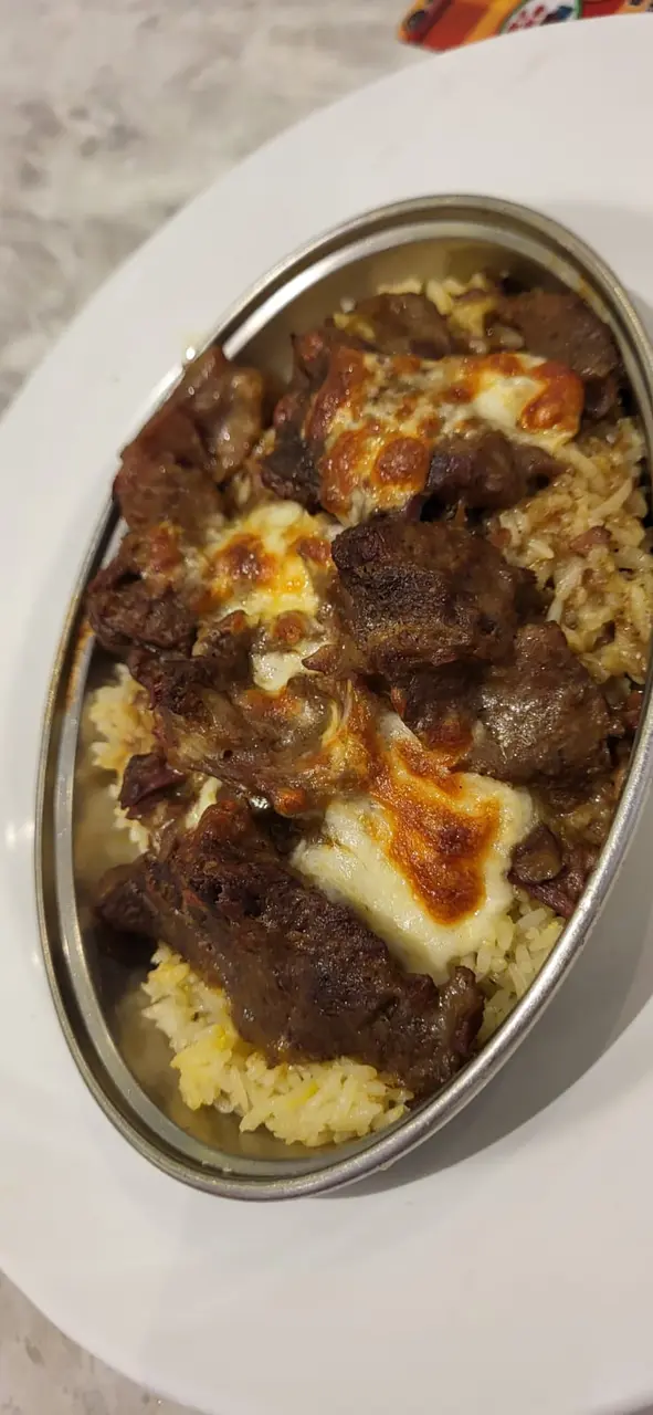 第一次叫了焗飯看看,還包了凍飲,咖哩汁已收在飯中,牛腩外表較乾身,肉汁可能是在焗中流失不少,是啖啖肉,就是沒有想像中的多汁和嫩,都可以接受,飯是傳統的炒飯底,有咖哩汁的香和肉汁的濃,可以。