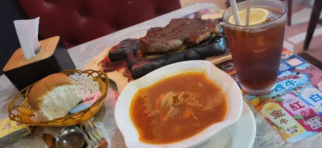 那第二次也點餐,看到說是簿牛扒餐,以為真的很簿,來到發現都可以,及算是可以,比一些出名的都厚不少,餐包和紅湯算是可以接受。