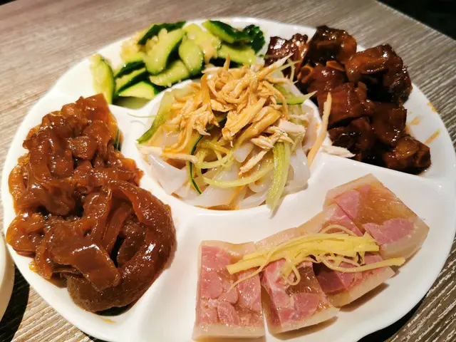 另外,我們點了五味小食拼盤,分別是蒜味青瓜,海蜇,上海白肉,糖醋排骨,雞絲粉皮。呢個小食拼盤出奇地正,份量好大碟。我們邊食邊吹水邊飲茶,慢慢嘆,個冷盤又唔怕放得耐唔好食