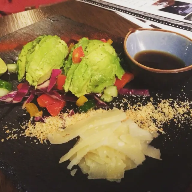 呢個係全晚最好食, 牛油果刺身, 聽個名仲以為係日本菜, 原來個IDEA係由日本菜拎靈感, 個牛油果香軟, 旁邊仲有D新鮮蔬果, 係店員親自去菜檔買番來架, 側邊有D芝士碎同SPICY POWDER, 沾埋個汁, 實行有兩種享受