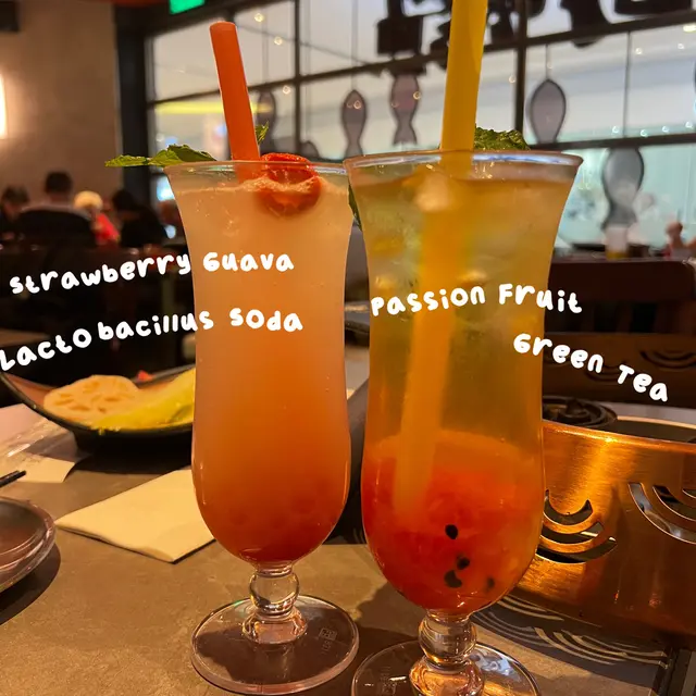 🐟飲品-爆珠百香果茱莉綠茶、爆珠草莓番石榴乳酸梳打