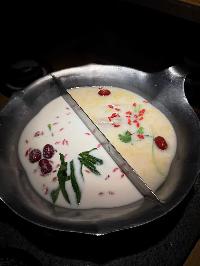 氣氛🎄🧑‍🎄,環境古典優雅,服務也周到有求必應,天氣凍來個胡椒肚鍋和酸菜白肉鍋超開胃🤤,湯底真材實料,飲完個湯全身暖笠笠,食材品質好新鮮🤩,食物擺盤精緻,企鵝丸造型可愛,影相打卡一流,適合約會家庭聚餐,还有两人套餐和四人套餐選擇價格也實惠,象拔蚌配刺身搭配和风鍋底398,點了象拔蚌刺身来生食,脆爽甜口感一流,每次想食一定要提前預留,因為好快賣曬,在香港來講性價比高