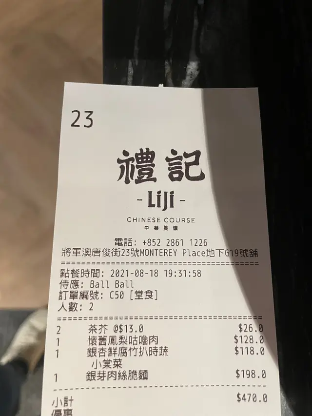 將軍澳驚艷中菜館 🍲 b612andreaaaLevel 42021-08-22135 views Follow 將軍澳都開左donki,附近間禮記中菜裝修好靚,個區旺中帶靜,好岩同朋友食飯飲兩杯。玫瑰荔枝茶玫瑰荔枝茶 $26揀左少女心滿滿的玫瑰荔枝茶,個茶杯好骨緻,飲落都甜d🥰懷舊鳳梨咕嚕肉$128懷舊鳳梨咕嚕肉 $128擺盤好靚,打卡一流,最緊要係好味道,作為第一道菜酸甜開胃~銀杏鮮腐竹扒時蔬(小棠菜)$118銀杏鮮腐竹扒時蔬(小棠菜)$118個湯呈乳白色勁好飲,小棠菜清甜同腐竹好夾,好暖胃😋銀芽肉絲脆麵$198銀芽肉絲脆麵$198銀芽肉絲脆麵 $198戲肉黎,職員一拎上台我地就準備好相機📷炸到麵定曬型,淋上燒汁後職員會幫你剪好啲麵,好好服務,脆麵同香鮮既菇同肉絲不能再夾!The above review is the personal opinion of a user which does not represent OpenRice's point of view.1Share將軍澳驚艷中菜館 🍲 禮記 https://s.openrice.com/QrKT0dmyVW0Report Post Ratings4Taste5Decor4Service4Hygiene4ValueRecommended Dishes銀芽肉絲脆麵$198銀芽肉絲脆麵$198銀杏鮮腐竹扒時蔬(小棠菜)$118懷舊鳳梨咕嚕肉$128玫瑰荔枝茶Date of Visit2021-08-19Dining MethodDine InSpending Per Head$230 (Dinner)