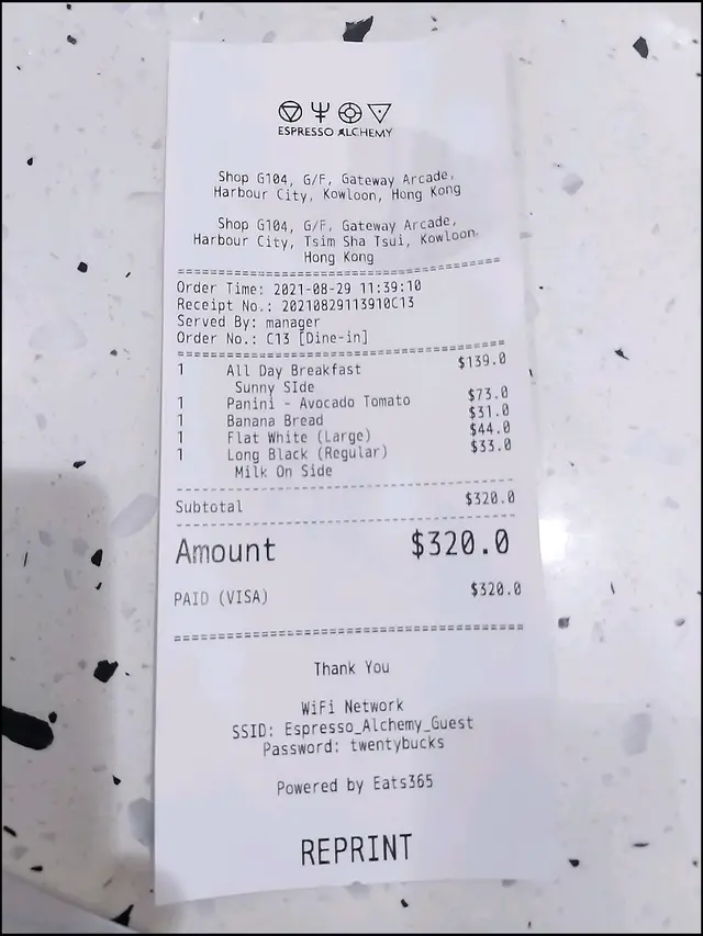 澳白咖啡(大)$44