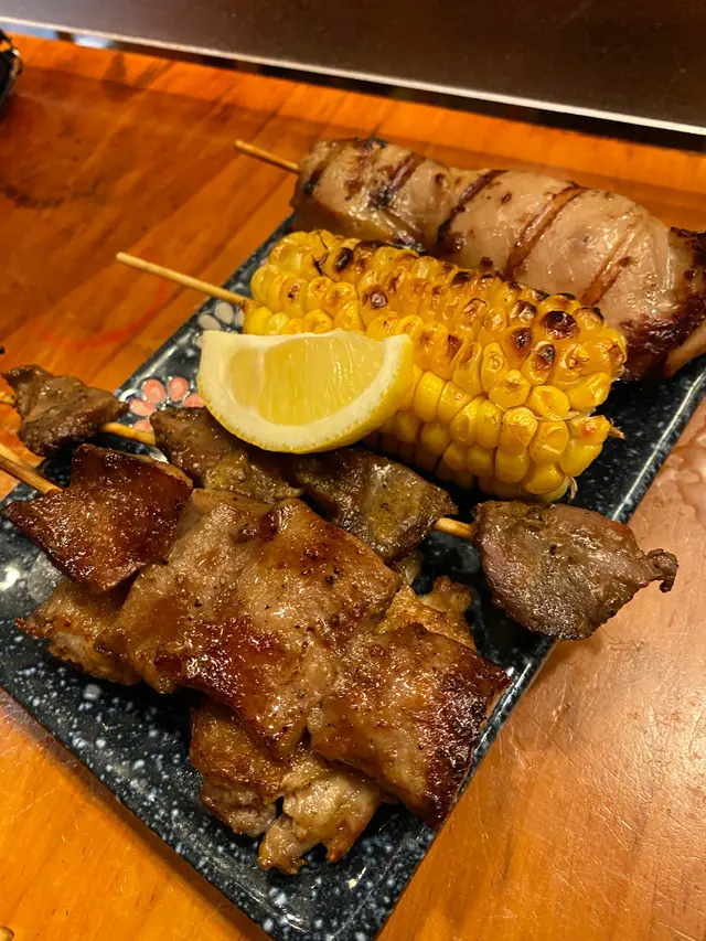 柚子雞脾肉串 燒粟米 牛脷 雞腎