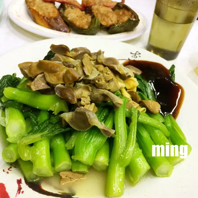 「雞雜拼油菜(大)」$80:油菜要了菜心。菜份量都多,菜幾入味,仲俾埋蠔油。如果食得比較淡,可以唔要蠔油都得,好在佢d蠔油「淋」埋一邊。雞雜原來係滷水整,份量就唔算好多,少少咸(滷水野嘛),最岩送酒,巧醒呀我,已經一早叫定左枝啤酒。雞雜有腎、肝、腸 ,不過腎就硬更少少。我呢都係鍾意食炒雞雜多d (我知我好重口味)。