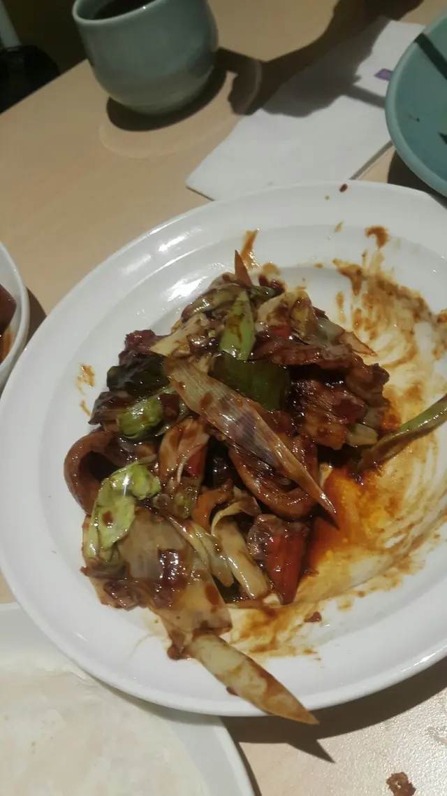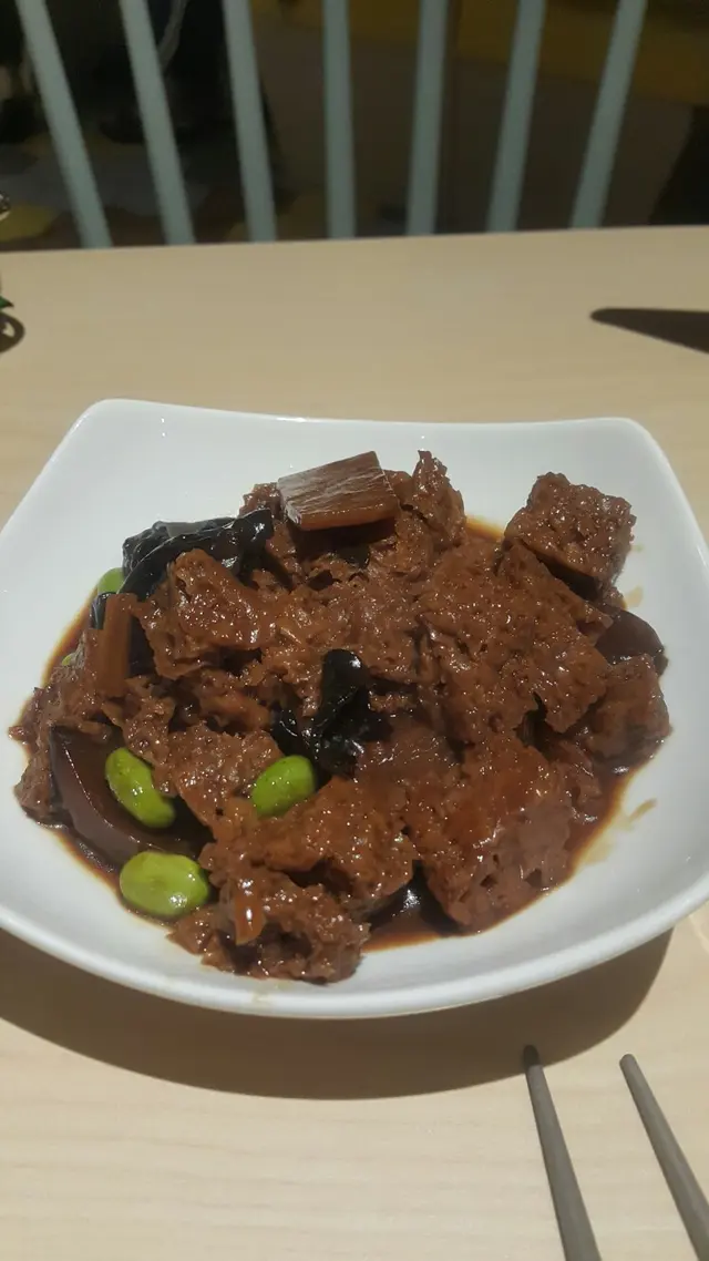食物 -四國烤麩同出面食到的不同佢係熱的,之前食過多數係冷盤。煎素鵝-裏面夾冬菇煎得好香唔油。煎鍋貼4只-皮有小小厚,但味道好食嘅。回鍋肉併薄餅- 薄餅厚左D,回鍋肉唔會好喊,兩者夾埋一起味道適中,上海炒年糕-年糕好Q唔痴牙(咸味適中)