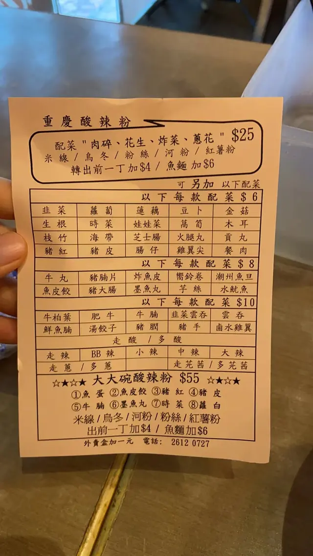 小巷中的麻辣燙 ngoyiwongLevel 32022-06-19757 views Follow 係香港好難搵到正宗既麻辣燙呢間小店就係平時返屋企嘅小巴站都開咗好多年 有燒烤、酸辣粉、麻辣燙等等內地重口味食物而且新工作就在附近 所以今日中午就決定食佢!由於係自己一個人嘅關係 所以只可以淺嘗..只係叫咗酸辣粉配菜價錢合理由於係第一次食 所以唔敢叫太辣而且都聽到隔離枱小朋友食唔辣都話辣所以今次只係叫咗小辣 另加左炸魚皮 雲吞 雞翼個人覺得小辣都真係好夠啦但略嫌酸味唔夠 所以自己又再加咗醋其他配料不過不失希望下次有機會再食燒烤 因為平時都見到好多人食The above review is the personal opinion of a user which does not represent OpenRice's point of view.LikeShare小巷中的麻辣燙 麻辣串串香 https://s.openrice.com/QrKT0NOn300Report Post Ratings4Taste3Decor3Service3Hygiene4ValueDate of Visit2022-06-03Dining MethodDine InSpending Per Head$50 (Lunch)