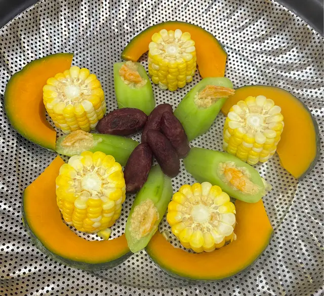南瓜、粟米、紫薯、蝦米勝瓜四樣都夠腍好新鮮。