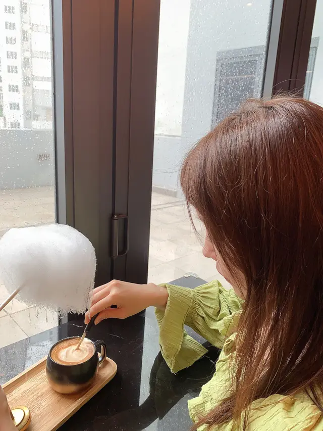 最後,叫咗個「棉花糖咖啡」$58!☁️☕️ 呢個棉花糖真係勁似一舊雪❄️,慢慢跌落嚟,影相一流📸!打卡一流!勁靚!🥰 咖啡嘅味道都唔錯,甜甜哋,好啱女仔口味!💖