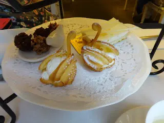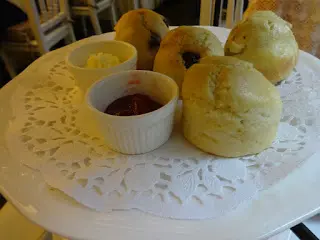 英式鬆餅,有無花果、松子、葡萄乾和原味,配玫瑰士多啤梨果醬和忌廉