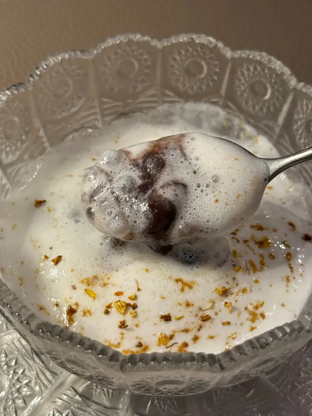 甜品红豆沙配椰子泡沫,清甜不腻,完美收尾
