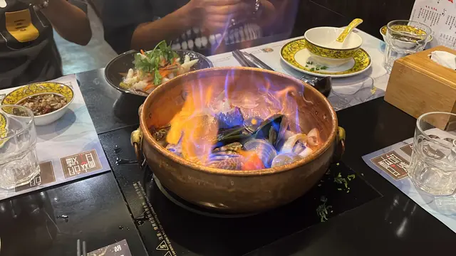 首先,店員行過嚟幫我哋將呢啲材料炒香咗先,然後再加入酒,令到鮮味再提升,最後再加入超級濃郁嘅龍蝦湯底🤩🤩🤩🤩等成個煲滾咗之後,第一時間飲一碗熱辣辣嘅海鮮龍蝦湯🤤🤤🤤包你飲過返尋味🤪
