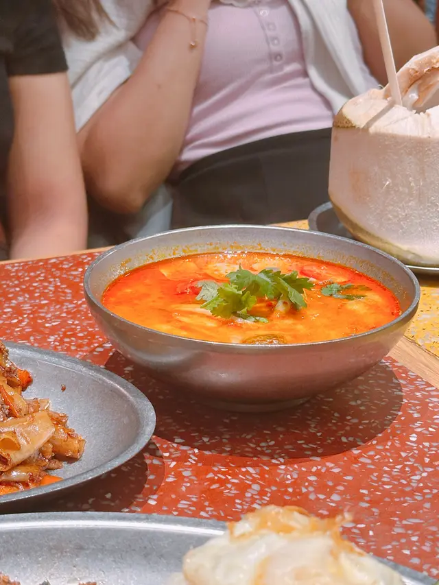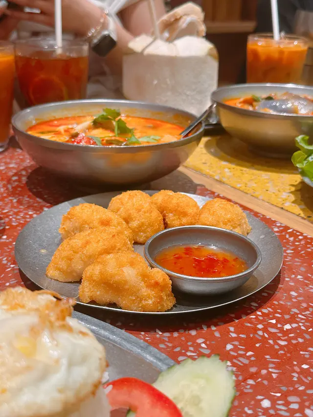 尖沙咀人氣泰國菜 0907kinkiLevel 42025-08-252K views Follow 每次約朋友近近地食泰國菜🇹🇭都會去「Boat Thai」😉.⚠️此餐廳收取10%服務費💰.泰式冬陰功湯🥣單點$98💰有齊甜、酸、辣🌶️仲有醇厚椰奶奶香味🥥以及各種香料味道🌱入面有車厘茄🍅蝦🦐菇菌等🍄🟫.泰式太陽蛋香葉炒肉碎飯🍚單點$78💰肉碎香辣油香🐖帶陣陣金不換香氣💨配上煎蛋🍳好開胃🤤泰式乾炒豬肉片河粉🍜單點$78💰炒得乾身有鑊氣🔥加上蘿蔔🥕芥蘭🥬雞蛋🥚肉片🥩唔錯😋炸蝦餅(3件)🍤單點$58💰.泰式檸檬茶🍋單點$25💰.泰式奶茶🥤單點$25💰The above review is the personal opinion of a user which does not represent OpenRice's point of view.LikeShare尖沙咀人氣泰國菜 Boat Thai https://s.openrice.com/QrKT0Qnyl00Report Post Ratings5Taste4Decor4Service4Hygiene4ValueDining MethodDine In