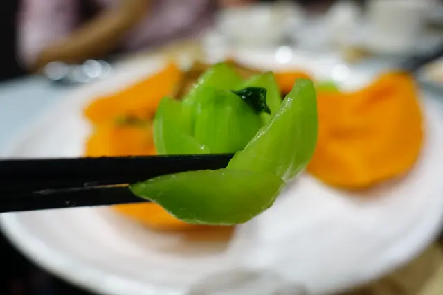 日本南瓜鬆軟甘甜, 正好一解吃2道炸物的油膩感覺, 其他的菇菌也頗配合南瓜, 難得的小棠菜也切得頗精細. 排盤漂亮.