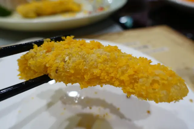 一般吃的瀨尿蝦最多的是清蒸, 其次則是椒鹽, 加上鹹蛋黃的黃金拆肉炸蝦則是第一次. 而且排盤裝飾頗為精緻.