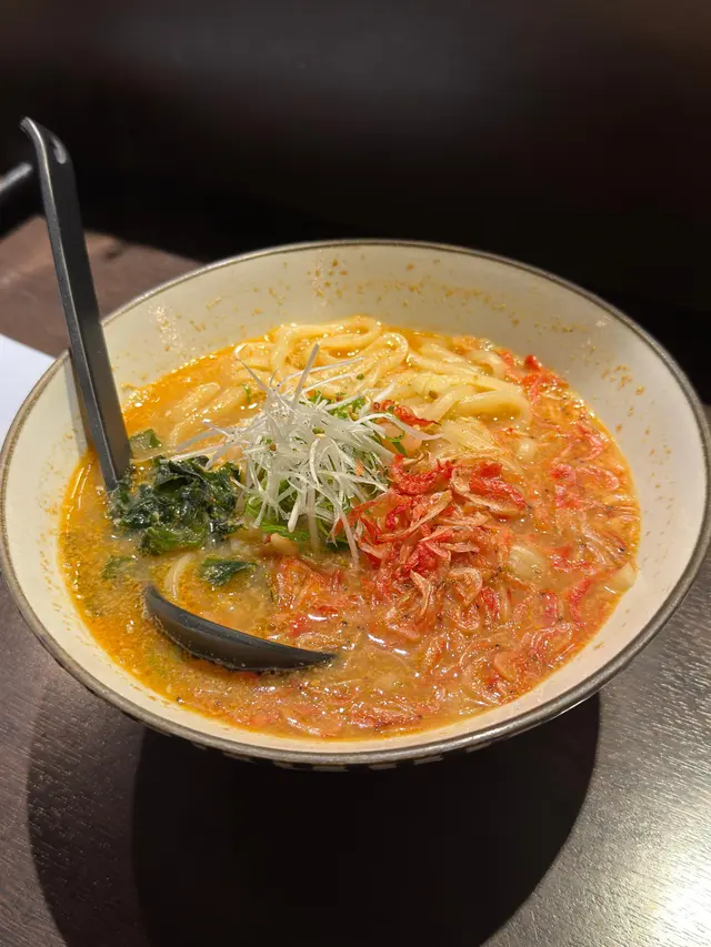 烏冬彈牙,蝦湯好濃郁鮮味!配料除咗有蝦隻仲有櫻花蝦增加口感。