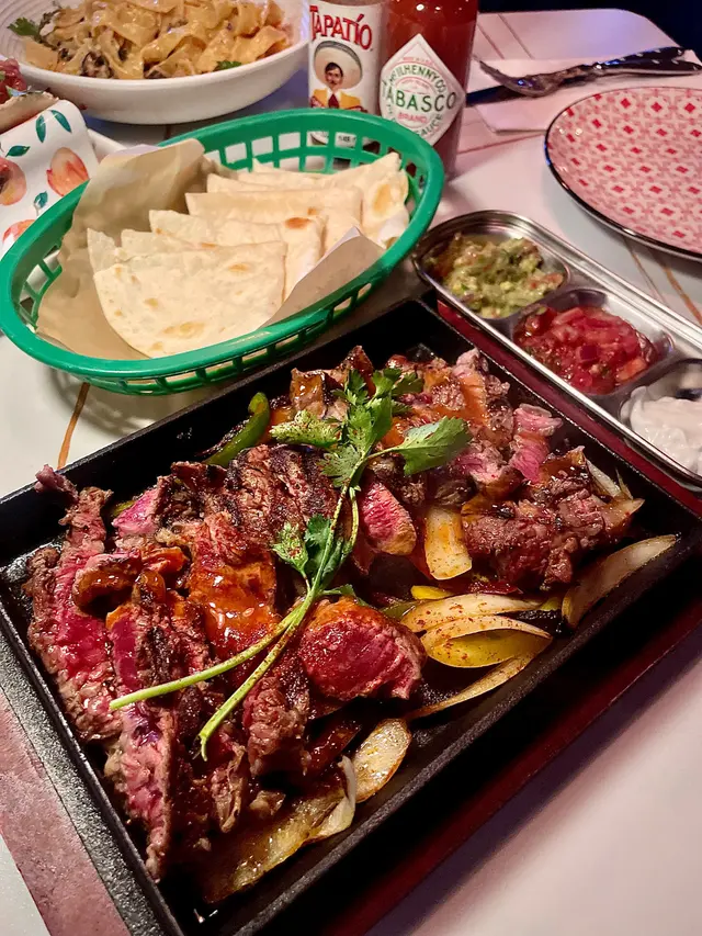 大推呢個墨西哥鐵板🙌所有tortilla墨西哥餅皮都係自家制👍牛排烤到啱啱好嘅medium,肉質嫩滑又帶少少油香👏加埋🇲🇽配菜蕃茄🍅蓉、牛油果🥑醬、Yogurt,配埋洋蔥同青椒,香氣四散😋一啖肉一啖菜,完美平衡