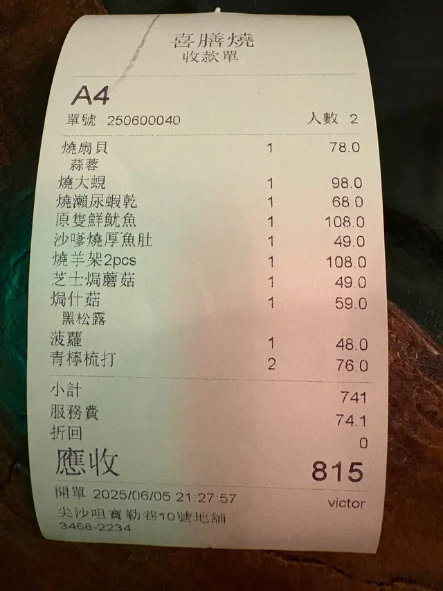仲有好多款都好好食得好原隻燒魷魚都好推介呀!朋友一齊叫左青檸梳打,啱啱好可以解油膩,整體100分!服務都好好,都會好細心嘅介紹食物同埋提醒你要點樣食👍🏼👍🏼有加一~