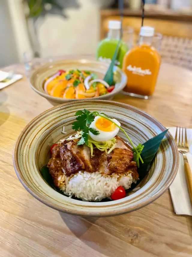 午市套餐性價比高,主食的份量都挺大,飲品除了包含指定幾款免費飲品之外,還可以用半價升級無酒精飲品。我和朋友分別點了泰式奶茶和奶綠。奶綠比奶茶稍微甜一點,個人更推薦奶茶的口味。