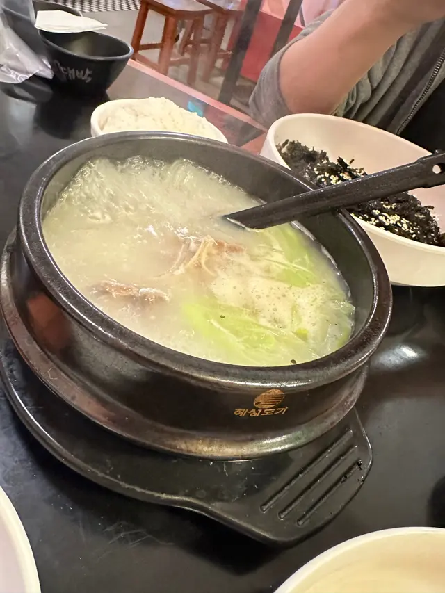 我哋仲嗌咗個牛尾湯,湯有跟咗碗白飯~ 嚟到新鮮熱辣仲好滾🥰牛尾都有好多舊~ 大大舊咁好夠味。weekend 想飲返2杯,我哋揀咗米香味嘅韓國生米酒 2個人分一支酒岩岩好唔會太多😌 btw 店員姐姐幾nice 仲靜靜話我知用錯咗杯嚟飲😂