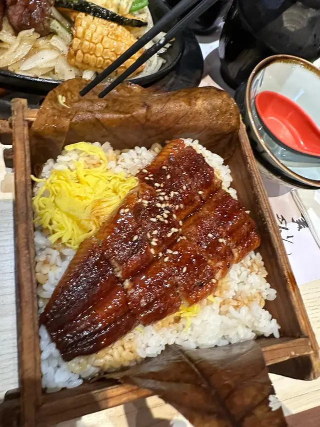 再嚟就係個鰻魚飯($100)首先鰻魚做得好夠味好出色,飯身咬落好有口感。份量好多,齋食一個都已經夠晒飽肚。