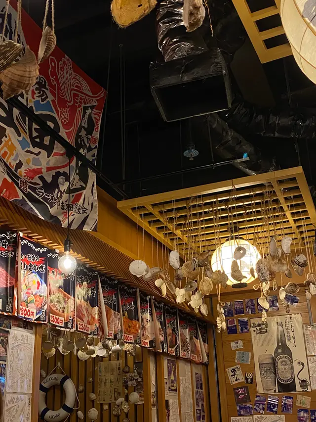 餐廳充門日本風情,天花掛滿貝殼,牆身掛滿日式掛畫同旗仔,好似置身於日本🇯🇵,非常有日本風。