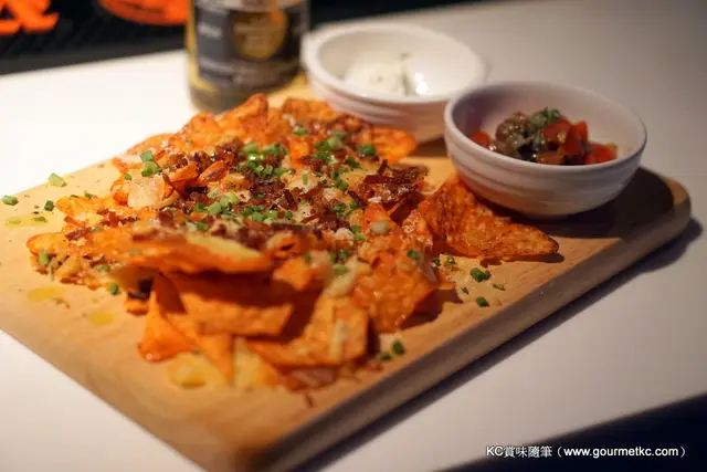 漢堡未到,朋友要點小吃來下酒,就要了烤粟米片。粟米片本身的味道是不說大家也可以估到的,這裡加入了芝士及碎煙肉同焗,令粟米片在脆口的口感以外,也有鹹香的味道。佐料方面,強烈推介淡忌廉,跟味道濃郁的粟米片是說不出的配合。