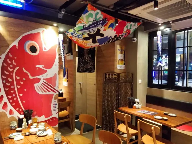 餐廳面積不大,裝潢以木色為主調,配上鯉魚旗等日式風格的裝飾,簡約的設計營造出淡淡的東洋味道。
