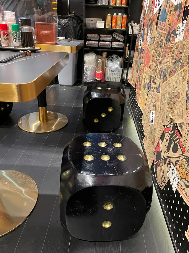 舖頭裝修好有特色 啲座位係一粒大骰仔😻😻😻牆壁上都有好多達摩不倒翁 好靚