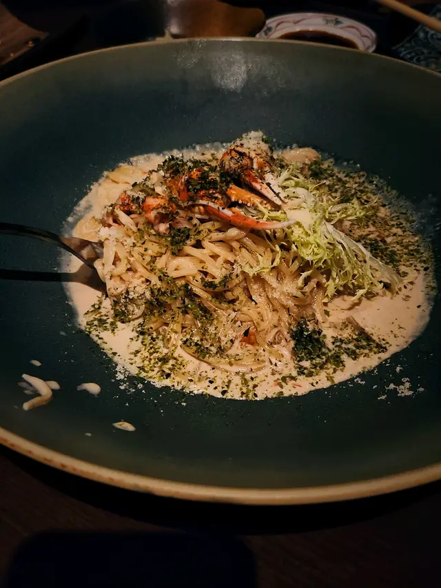 估唔到有西式fusion意粉😂 忌廉汁奶味偏重 質地較為稀身 不過每一啖都食到蟹肉 調味剛剛好唔會過鹹✅