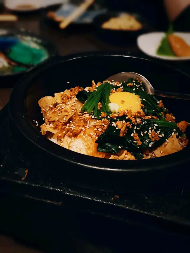 等咗超過30分鐘🥲 石頭鍋飯底部有少許飯焦 配搭菠菜/ 薄片豚肉/ 泡菜 韓式醬汁偏甜唔辣 幾大眾化口味~