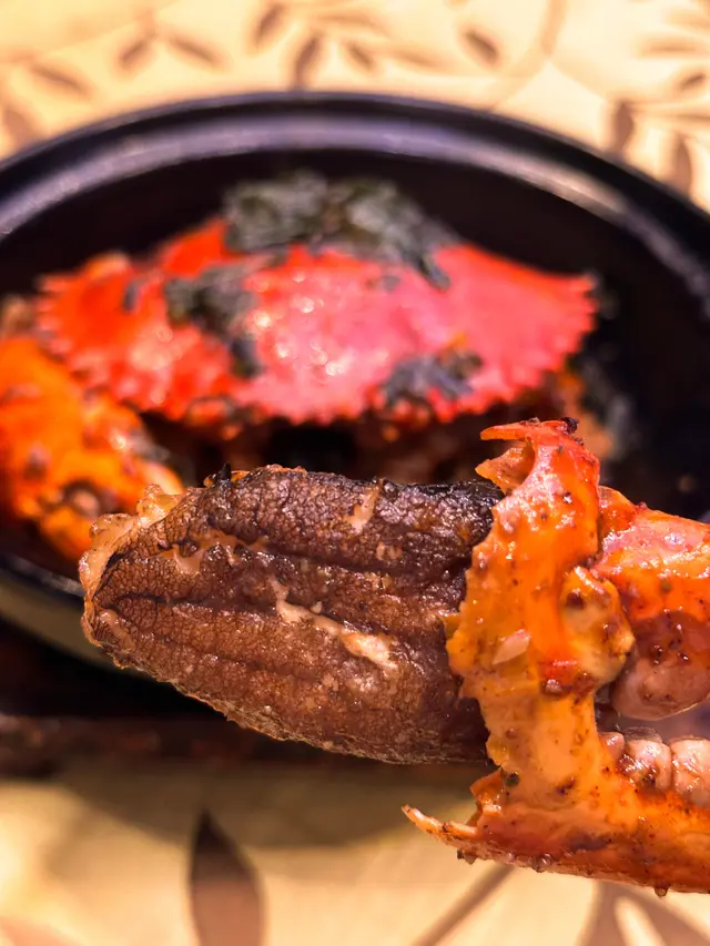 招牌白胡椒肉蟹焗飯 : 螃蟹肉質飽滿,蟹鉗肉質鮮嫩入味,以白胡椒烹調方法,帶出陣陣胡椒香味,蟹身配搭胡椒味道濃郁,微辣惹味,底層焗飯帶有少少焦香,吸收曬蟹汁及蟹膏嘅味道,夠曬惹味