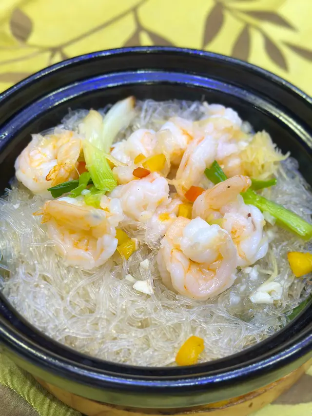 蒜蓉粉絲焗牡丹蝦 : 牡丹蝦口感充滿彈性,鮮甜爽口,用蒜蓉粉絲做底層,吸收曬蝦汁嘅味道,真係成煲粉絲都食得曬