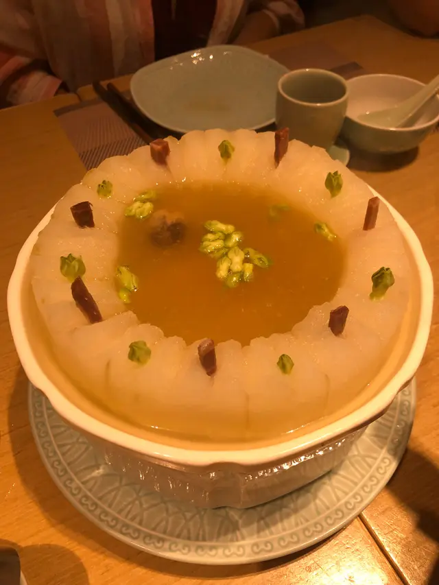特色海鮮冬瓜盅$268,材料有火腿粒、肉粒、蝦仁、瑤柱和夜香花,材料豐富,湯頭清甜鮮味。已經很少冬瓜盅會用上夜香花,因為夜香花的味道比較特別,很久以前才喝過幾次,個人十分喜歡。