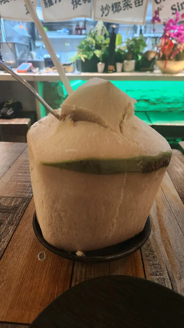 飲品方面叫咗大大個嘅椰青沙冰,解渴有椰子味,飲一啖透心涼。加上有焦糖燒菠蘿做甜品,大大舊又多汁,焦糖面夠哂脆,有酸味同甜味互相平衡,十分開胃。