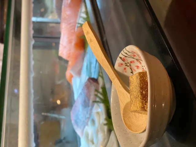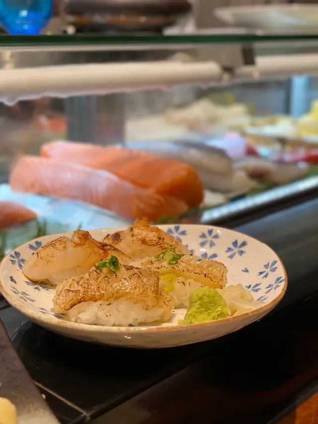 我們運氣很好,來到德美之後門口大排長龍,但好似都是兩人以上組合,所以我們兩個人不用等就獲安排坐在壽司吧台位置。我們點了一些刺身(三文魚腩、劍魚等等)、香蔥吞拿魚壽司、野菜牛肉鍋和火灸池魚壽司,葛餅甜品是餐廳送的。