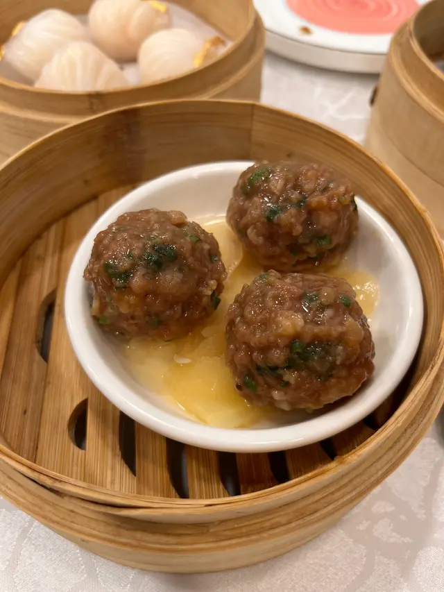 燒賣啲豬肉鮮嫩,小籠包就湯汁豐富,皮薄餡多;牛肉球嘅味道同質感都穩定,食落去都幾滿意。最後嘅甜品紅棗糕,甜度啱啱好,食完啱啱好為個餐畫上句號。