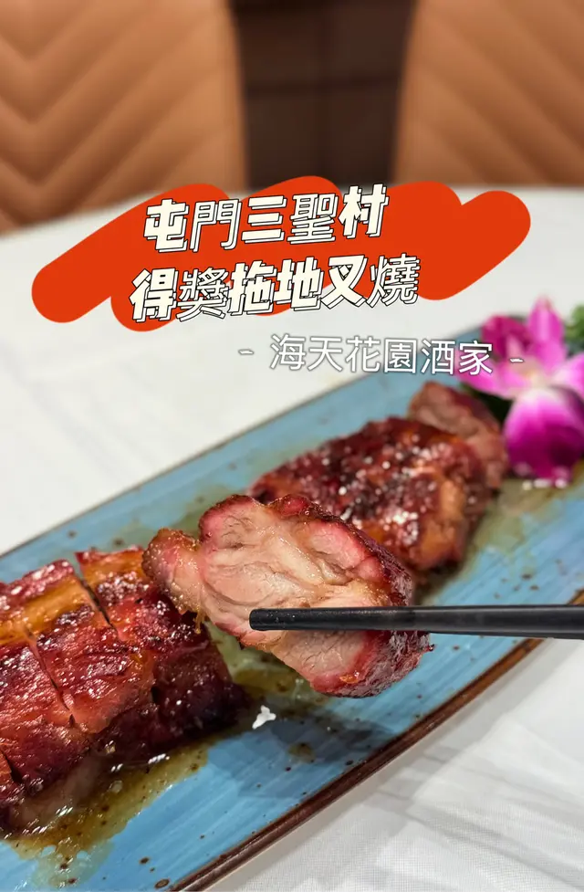 屯門三聖邨得獎拖地叉燒 FeastBaronLevel 22025-07-121K views Follow 📍海天花園酒家[屯門三聖邨得獎拖地叉燒]22屯門三聖邨是海鮮聖地,但其實得獎拖地叉燒(HK$190)都非常出名好食,半肥瘦、厚切大大啖、落枱的時候仲熱辣辣,啲肥係舌上融化,超高享受,每次到訪都必點。但建議盡量變凍前食曬;金鈎果香小炒皇($138),新鮮蝦都有唔少,相當有誠意;大澳蝦羔生啫唐生菜($108),味道都幾惹味,蝦羔味突出。22值得一提是食物的份量不少,兩個人點三個餸,最後都要打包,以免浪費。2The above review is the personal opinion of a user which does not represent OpenRice's point of view.1Share屯門三聖邨得獎拖地叉燒 海天花園酒家 https://s.openrice.com/QrKT0dMfT00Report Post Ratings5Taste5Decor5Service5Hygiene5ValueDate of Visit2025-07-06Dining MethodDine InSpending Per Head$250 (Dinner)