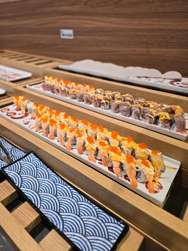 提供多款新鮮刺身,例如三文魚、吞拿魚、油甘魚、北海道帶子同赤蝦,質素高,口感鮮甜!仲有好多壽司、手卷可以嗌🍣✨