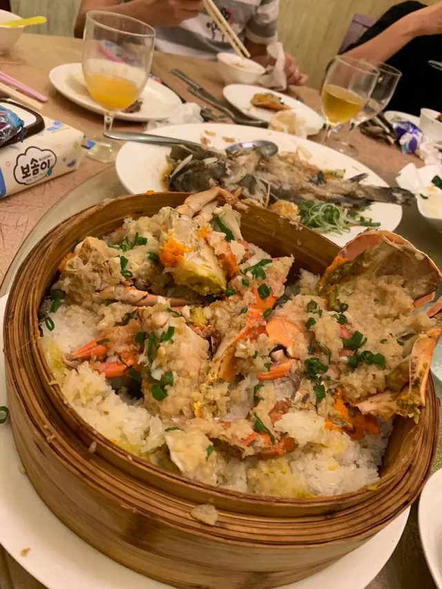 蒸蟹糯米飯又係另一推薦,好多朋友都係蟹魔!愛蟹嘅朋友,對於有飯味嘅蟹嘅愛!呢個蒸蟹糯米飯,加入瑤柱絲、脆蒜同埋蟹膏!真係不得了