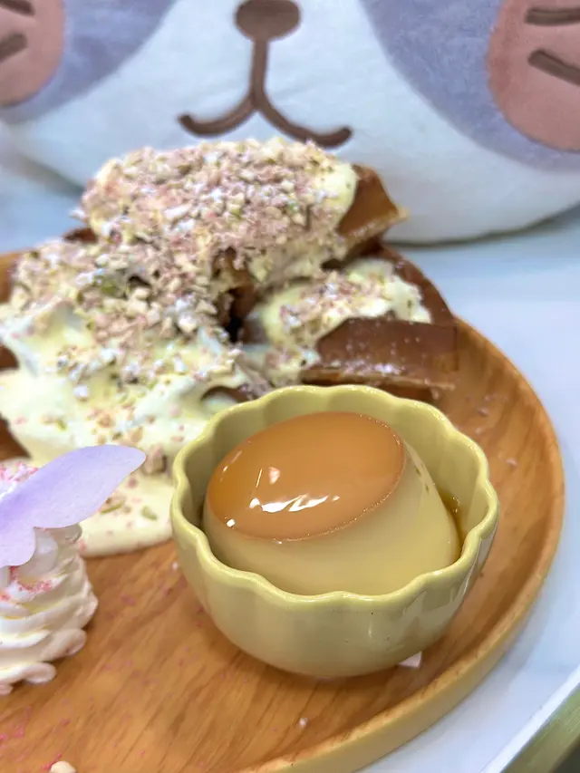 全場最邪惡!窩夫外脆內軟 淋咗鹹香奶蓋同焦糖醬 面頭仲有無花果乾同燉蛋
