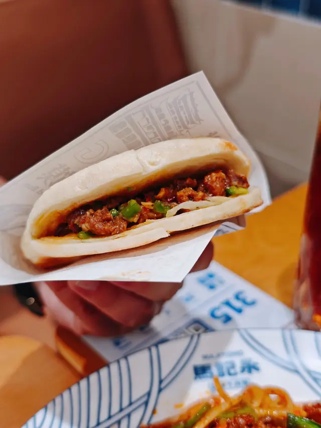 選用牛後腿肉,牛肉夾饃外層酥嫩,7分瘦,3分肥香而不膩。